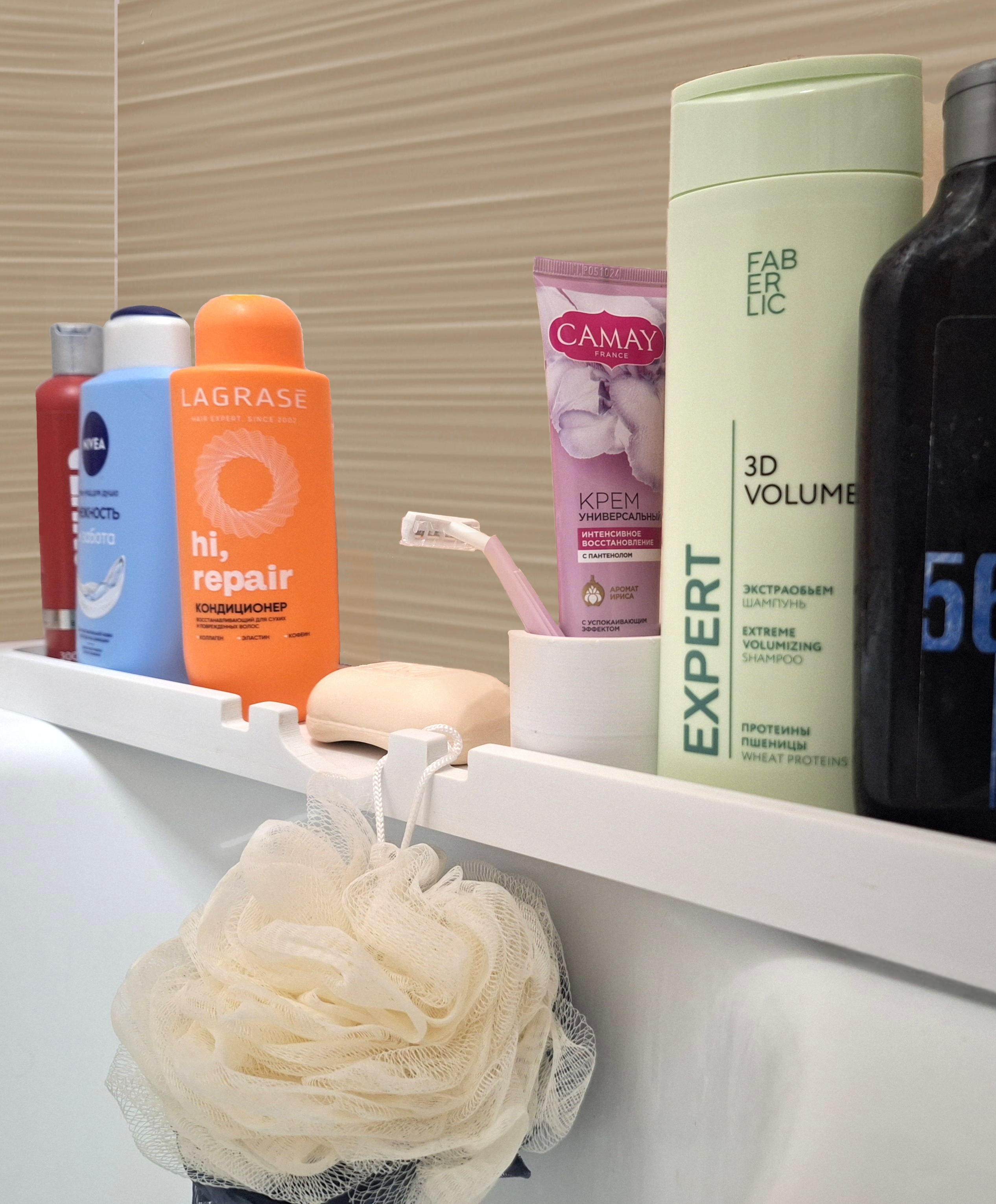 Монтаж настолько прост, что с ним справится даже новичок без опыта — достаточно сантехнического герметика! Больше никаких щелей, сырости и хаоса: бордюр-органайзер превращает проблемную зону в функциональную и стильную деталь вашей ванной.